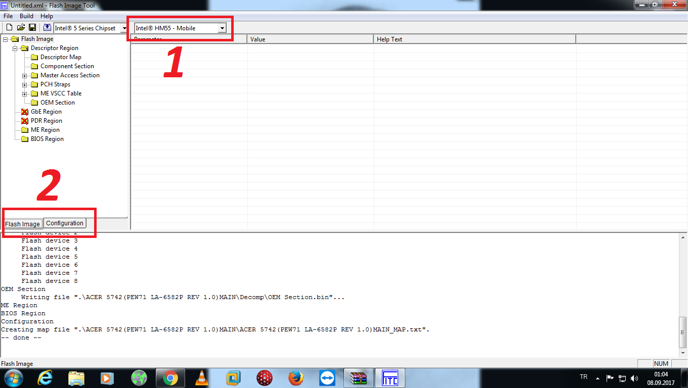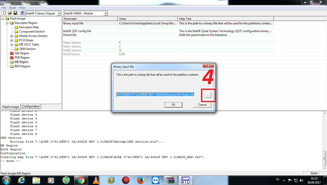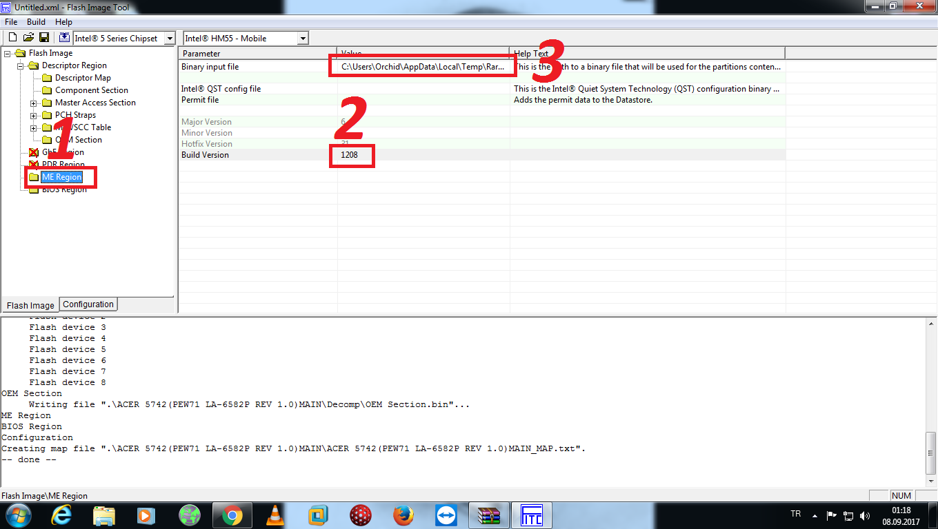 3- "1 numaralı" kısımdaki yere tıklıyoruz."3 numaralı" yere çift tıklıyoruz ve sonra "4 numaralı" yerden yolu seçiyoruz.Geldik "2 numaralı" kısma:Olayın esas kısmı burada."4 numaradaki" seçilen kısım buradaki "BUILD VERSION" olan kısmı.Seçtiğimiz versiyona göre "me region" oluyor.Yazılım kısmında verdiğim dosyalarla build versionu aynı olanı seçiyoruz...